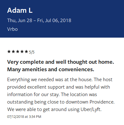Everything we needed was at the house. The host provided excellent support and was helpful with information for our stay. The location was outstanding being close to downtown Providence. We were able to get around using Uber/Lyft.