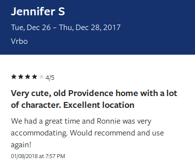 Tue, Dec 26 – Thu, Dec 28, 2017 (VRBO)