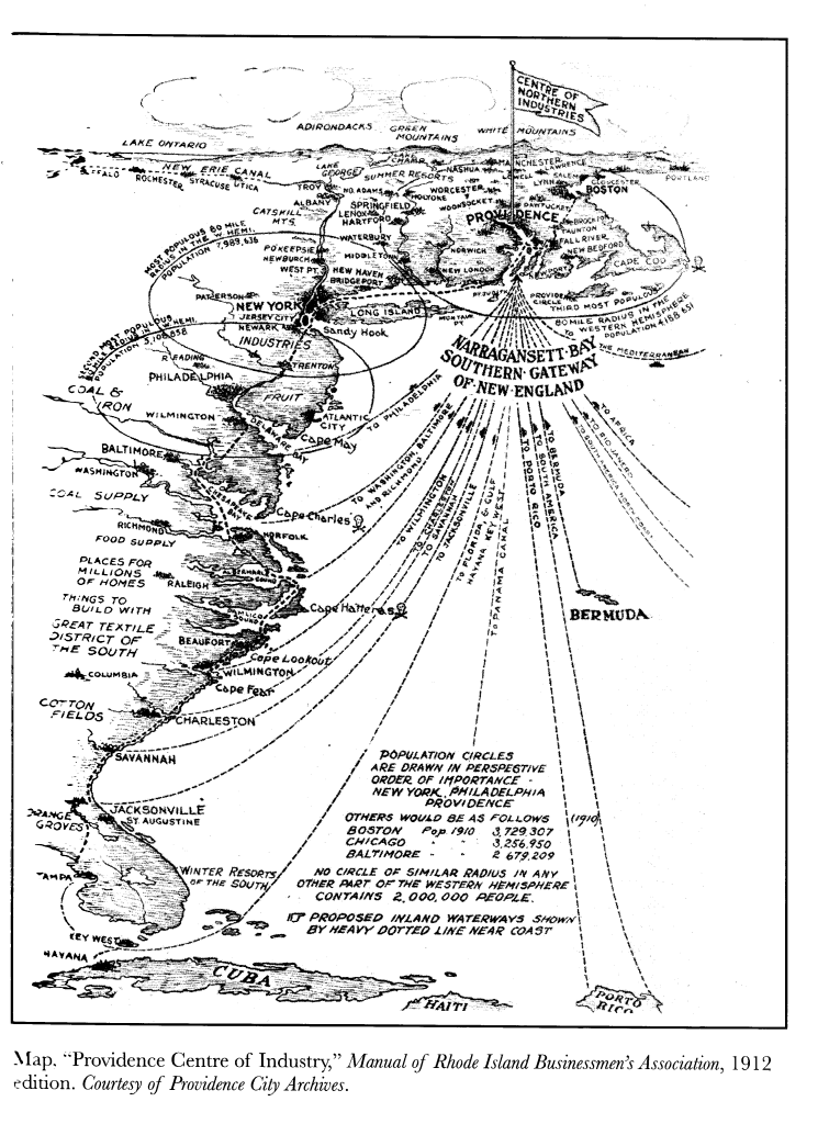 Page 25 in the Prologue shows an historic map showing Providence as the center of Northern Industries, a rival to Boston, New York and Philadelphia (see credits in the image below).
