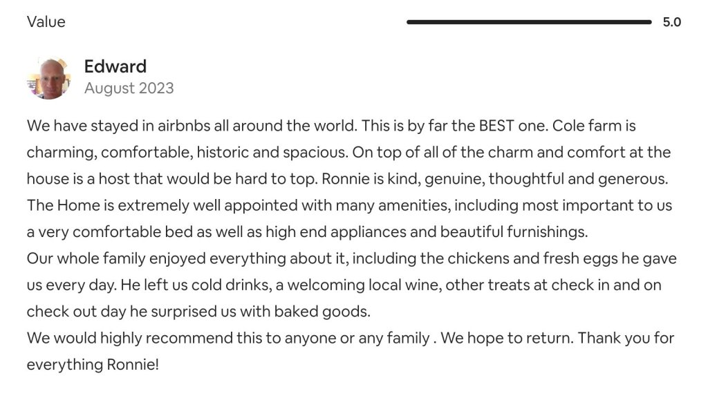 Edward, Airbnb guest, August 2023