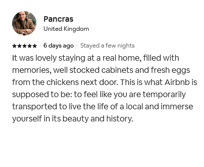 cabinets and fresh eggs from the chickens next door. This is what Airbnb