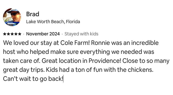 Brad, Airbnb guest, Cole Farmhouse #USA1731, November 2024