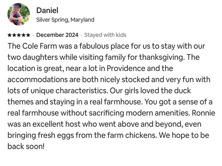 Daniel, Airbnb guest, Cole Farmhouse #USA1731, December 2024