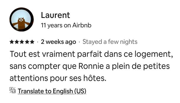 Tout est vraiment parfait dans ce logement, sans compter que Ronnie a plein de petites attentions pour ses hôtes.