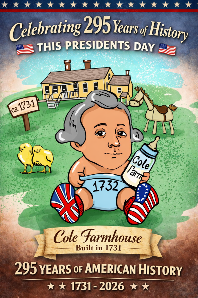 This Presidents Day marks a special milestone—295 years since the Cole Farmhouse was built in 1731. Nearly three centuries later, this historic home still stands as a place of warmth, rest, and gathering.Through generations, it has witnessed the story of a nation unfold—and today, we’re honored to share its timeless character with guests who appreciate history, comfort, and meaningful escapes.